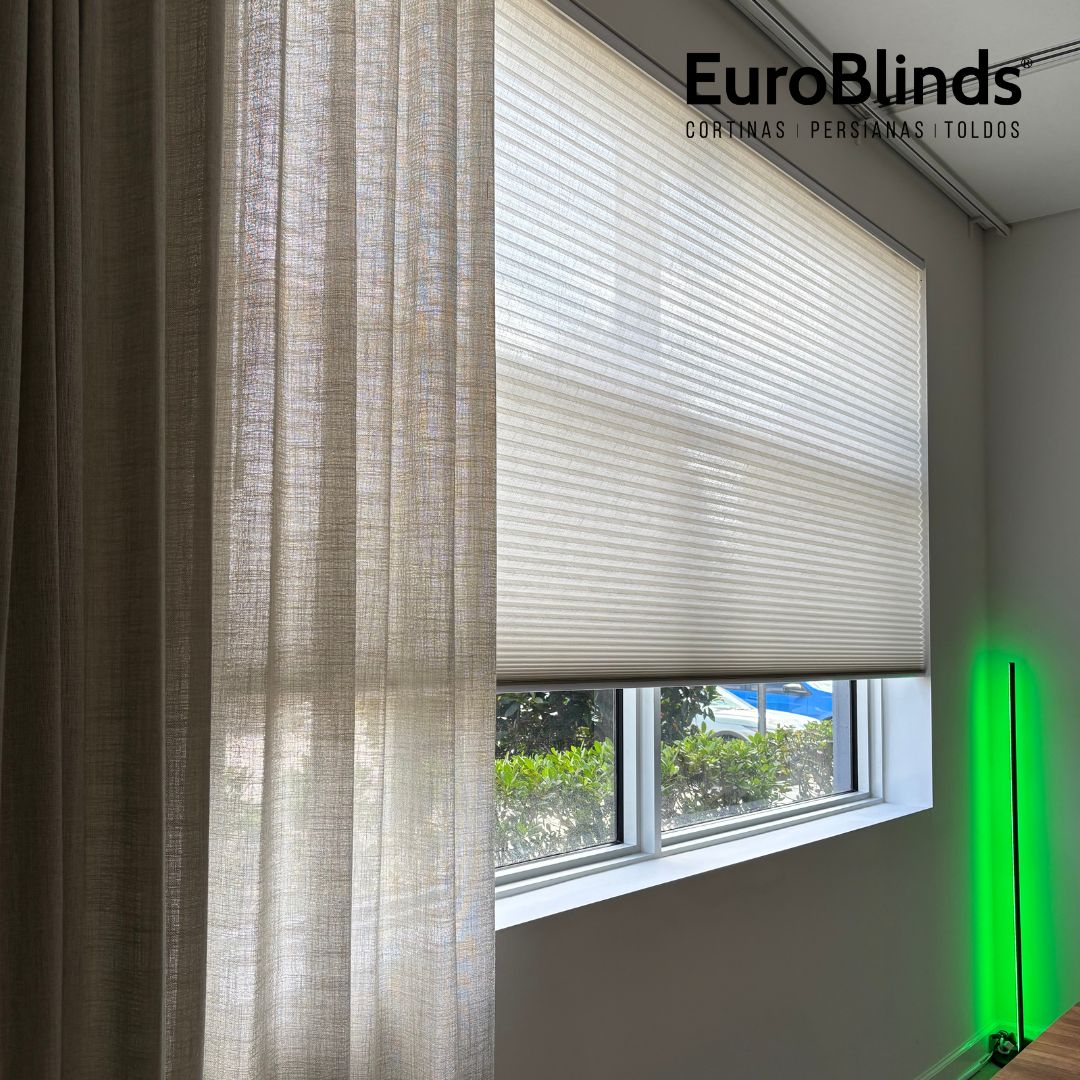 Las persianas EuroCel® deben su eficiencia energética al diseño celular, el aire queda atrapado dentro de las recamaras del tejido, lo cual es una forma natural de aislar la temperatura y el ruido. Con una variedad de tejidos en colores versátiles, siempre su parte posterior será en blanco lo que permite que la fachada de edificios o residencias tengan en sus ventanas siempre el mismo color. Este diseño ofrece propiedades aislantes únicas que hace del producto uno de los más exclusivos y funcionales de nuestro portafolio.