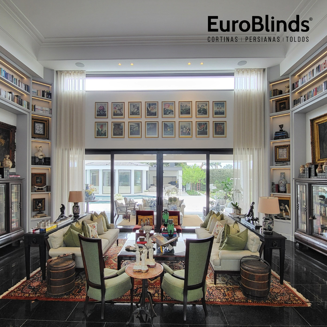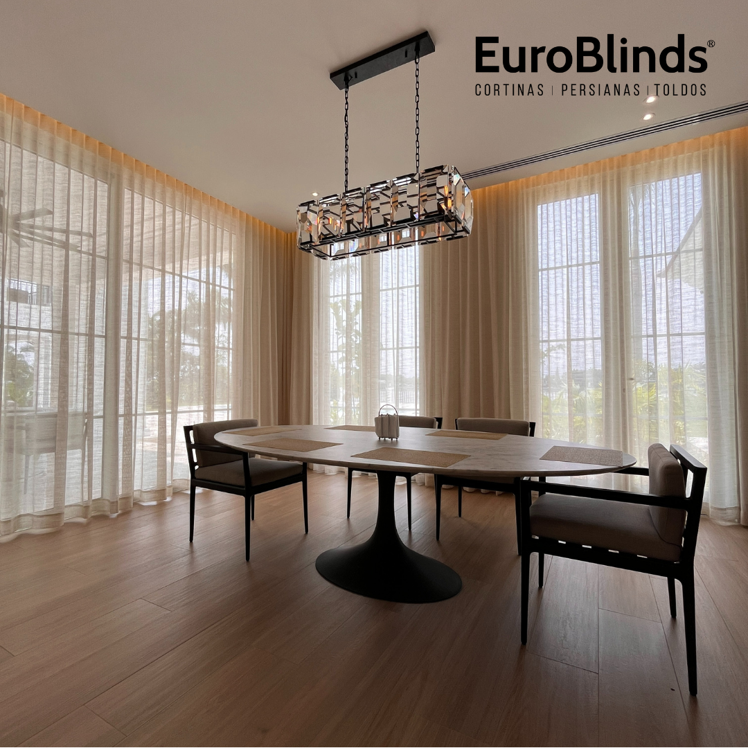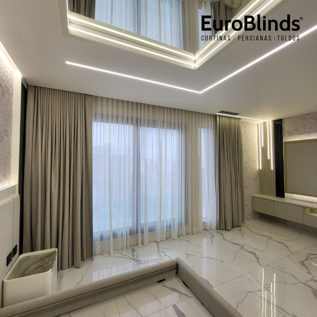 EuroDrapery® el diseño clásico de las cortinas tradicionales de tela, ofrece una exclusiva colección de tejidos, con elegantes terminaciones y un sistema de riel manipulado con control remoto, creando cortinas tradicionales motorizadas. Un producto único, funcional y decorativo, un clásico del sector residencial, transforma cortinas tradicionales de tela en una opción contemporánea con tecnología.