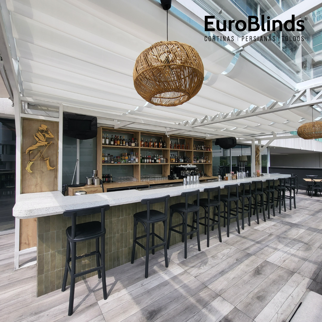 Este es el producto que necesitas para disfrutar al máximo de tu terraza o jardín en un espacio cargado de bienestar. Nuestra EuroSky® consiste en un conjunto de rieles y textiles suspendidos, ubicados debajo de una claraboya o pérgola, que a través de un sistema motorizado formará pliegues al convertirse en un techo retráctil. Proporciona un disfrute total al aire libre con controles de temperatura y protección lumínica.
